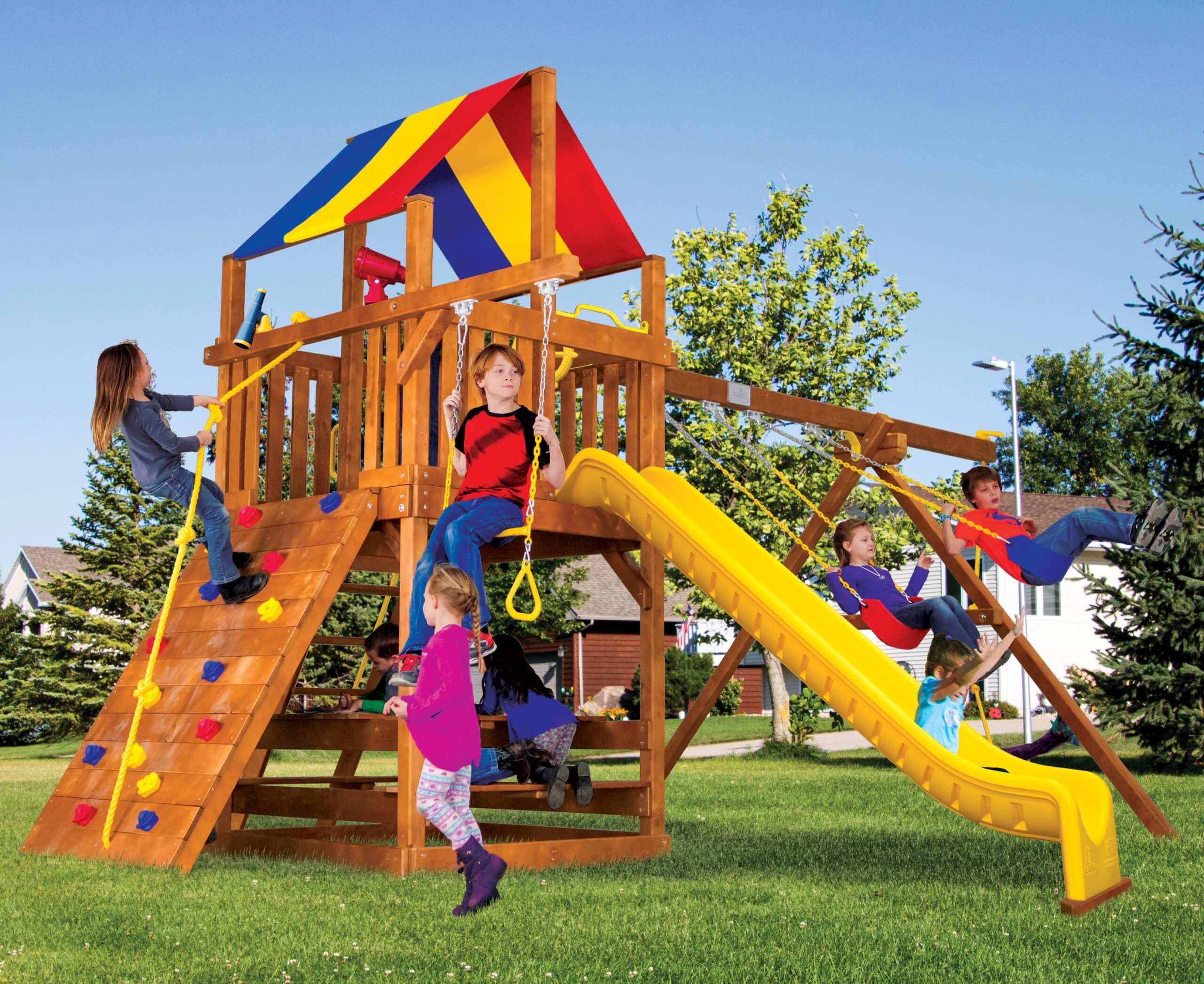 Visit your local showroom to experience the Rainbow difference. Climbing and swinging is encouraged!