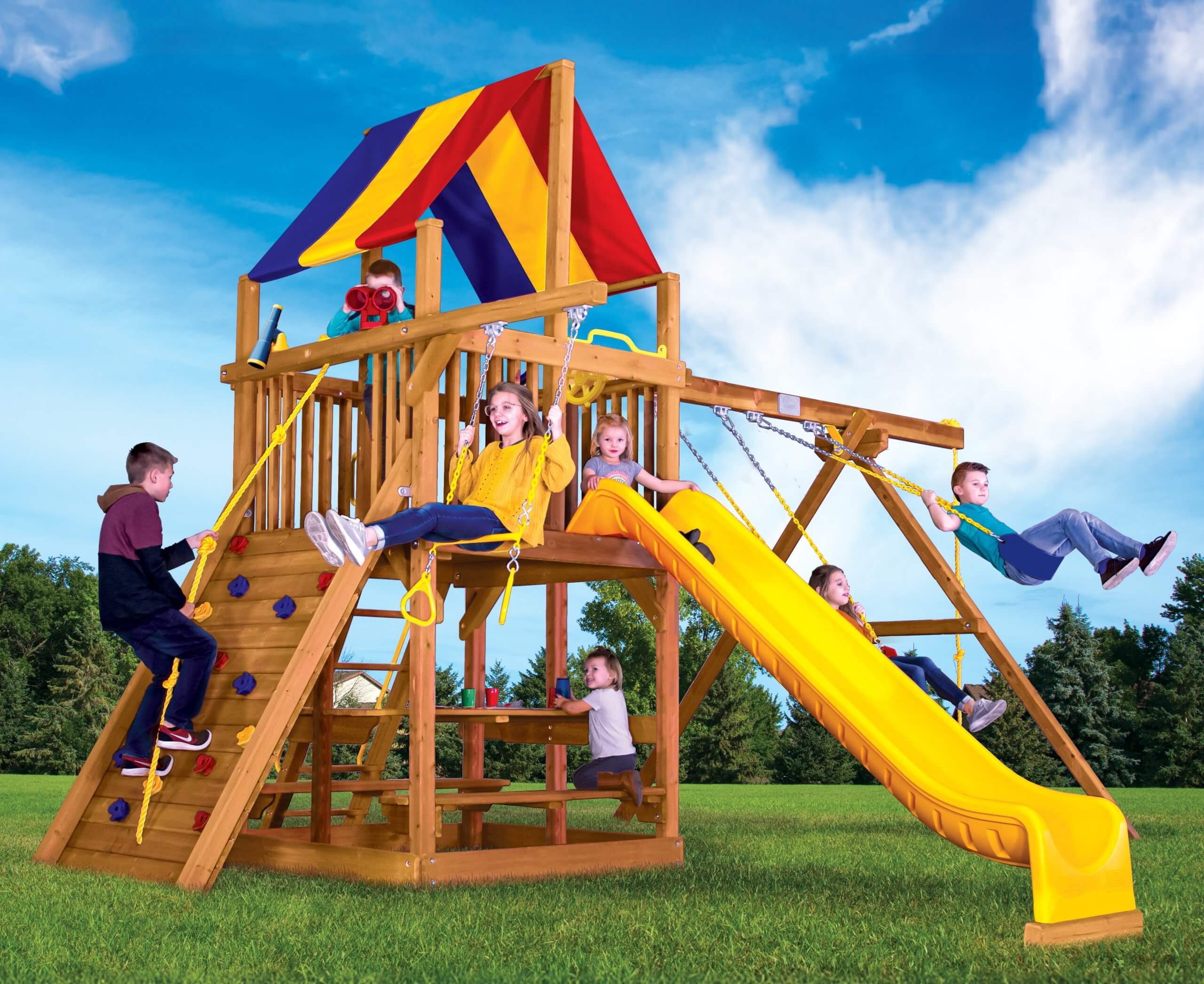 Visit your local showroom to experience the Rainbow difference. Climbing and swinging is encouraged!