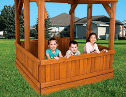Adding a sandbox to your Clubhouse will ensure hours of creative fun! Your kids will love making sandcastles, volcanos, and embarking on treasure hunting adventures. Not only does this make great use of the space below your playset, but it also provides a nice, safe shaded area for summer play.
