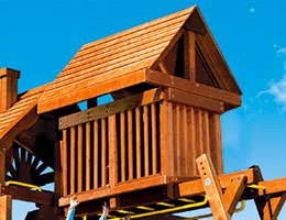 Nothing’s quite as stunning as this wood roof penthouse, featuring beautiful wooden shingles. Extra durable and attractive, this is the Cadillac of playset accessories. Your kids will feel like they’ve found a little home away from home.