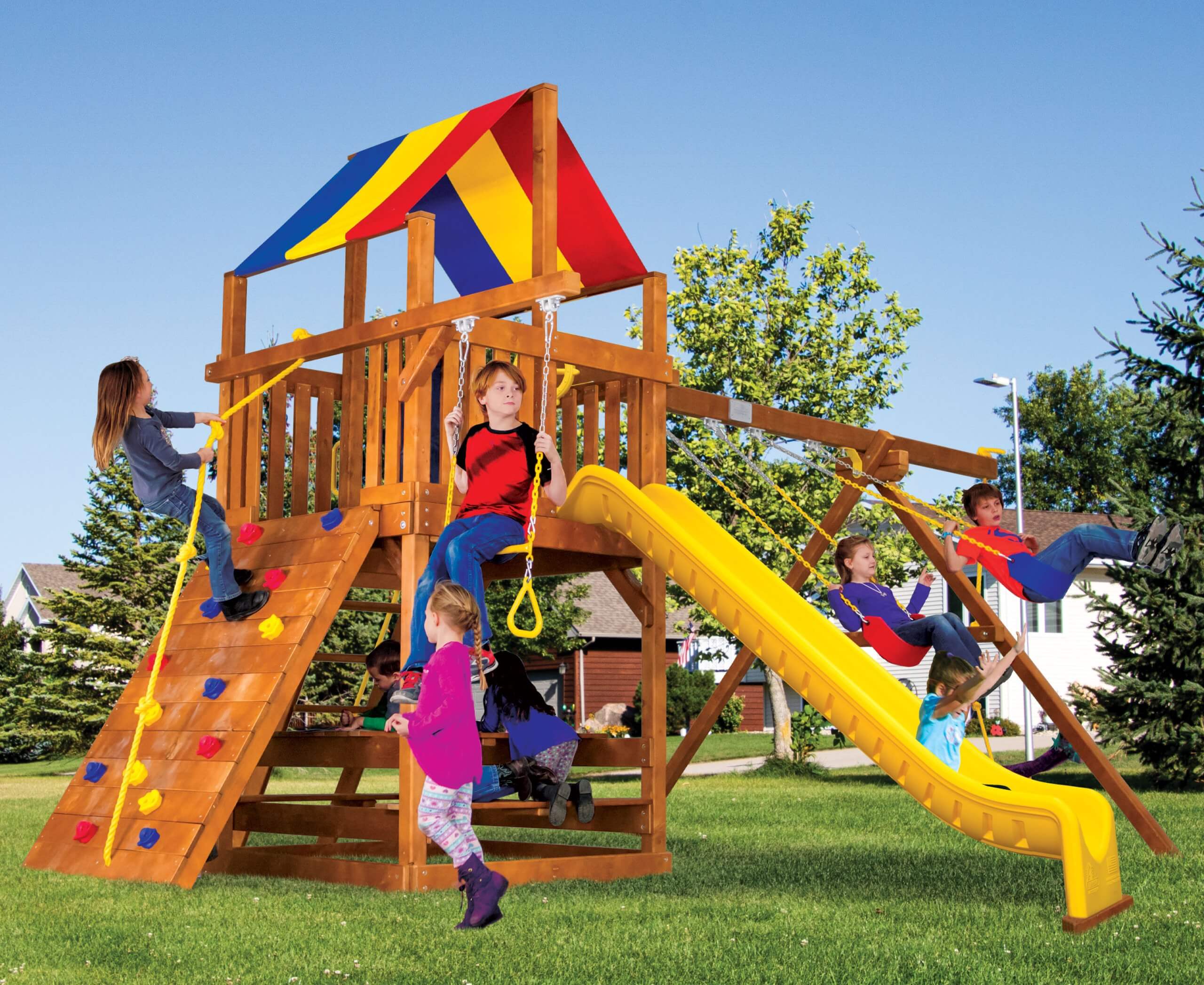 If you would rather see our kids’ swing sets, slides and other accessories for yourself, we have over 200 showroom locations across the US and internationally. Come visit us!